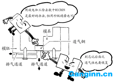 3.處理方式不單于透氣性鋼內模件之正臉開展,鑲件之里側表層亦需以一樣方式 解決,才可修復鑲件之透氣性能。