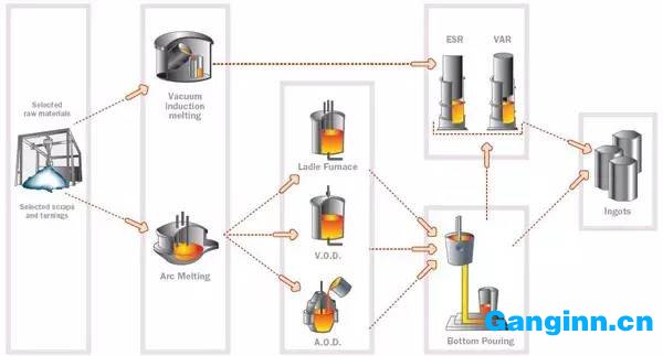 當(dāng)前世界主流的先進(jìn)冶煉工藝有兩種:電渣重熔(ESR)和粉末冶金。從產(chǎn)品質(zhì)量上說(shuō),粉末冶金?電渣重熔(ESR)?普通煉鋼法。